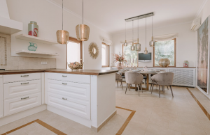 The property consists of 5 double bedrooms and 4 bathrooms. Also, two separate guest apart- ments with its own entrance, kitchen, living room and bathroom. Each apartment is approximately 80m2.
