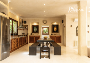 DINING & KITCHEN AREA – A fully-equipped modern kitchen with a spacious dining table for group meals