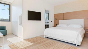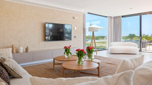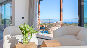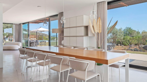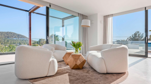 Villa With 6 Rooms In Cala Jondal Located in the quiet and charming area of Cala Jondal, this property is designed to offer the ultimate in comfort and luxury. Its large sliding glass doors let in natural light, creating a bright and welcoming atmosphere. The garden surrounding the villa is a natural paradise, a place to walk among fragrant flowers and Mediterranean plants, enjoying the singing of birds and the gentle rustling of leaves moving in the wind. The internal area is absolutely fantastic, featuring a clean design mixed with Asian influences and finished with fine porcelain tiles and natural stone tiles which enrich the environment making it an ideal place to unite. The four en-suite bedrooms are a wonderful oasis, the ideal place to spend quality time in 5-star spa hotel style. Two further rooms with shared bathroom are also available. On the first floor is the master bedroom with private terraces and lounges, both indoor and outdoor, it is equipped with a king size bed and two large bathrooms with tub and shower with impressive views that will leave you speechless. The upper level is fully used as a master suite. There are also two additional bedrooms that share bathrooms. Downstairs, discover a true sanctuary of well-being. The private spa with sauna, Turkish bath, chromotherapy shower and hydromassage tub is the perfect place to regenerate, while the private cinema offers you the opportunity to enjoy evenings of pure fun with friends and family.
