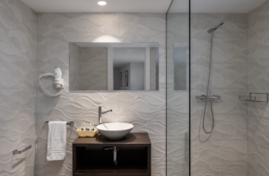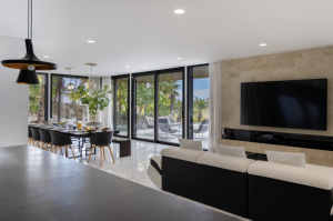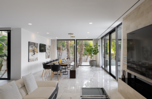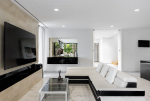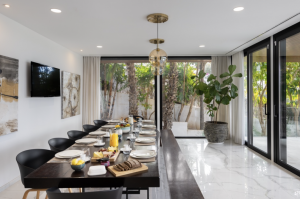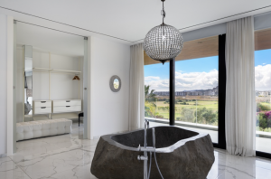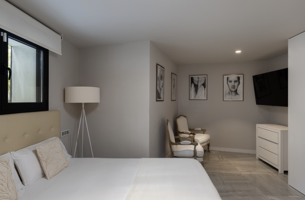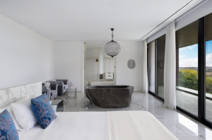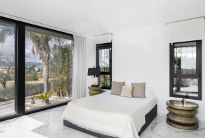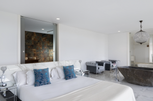This villa allows 12 guests. There is 1 presidential suite with terrace, sea views and interior aesthetic design. It has also 2 grand suites with big windows to explore the views and surrounded nature. It is completed by 3 big suites. All of them with bathroom ensuite. Living room and kitchen is also wisely design for extreme conform and design. Completing this luxurious villa there is an apartment with their own kitchen, gym and club at the ground floor.