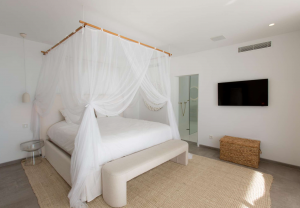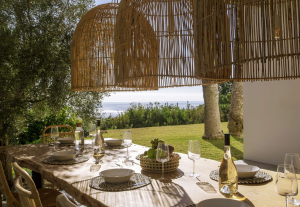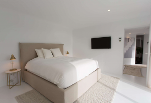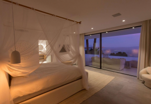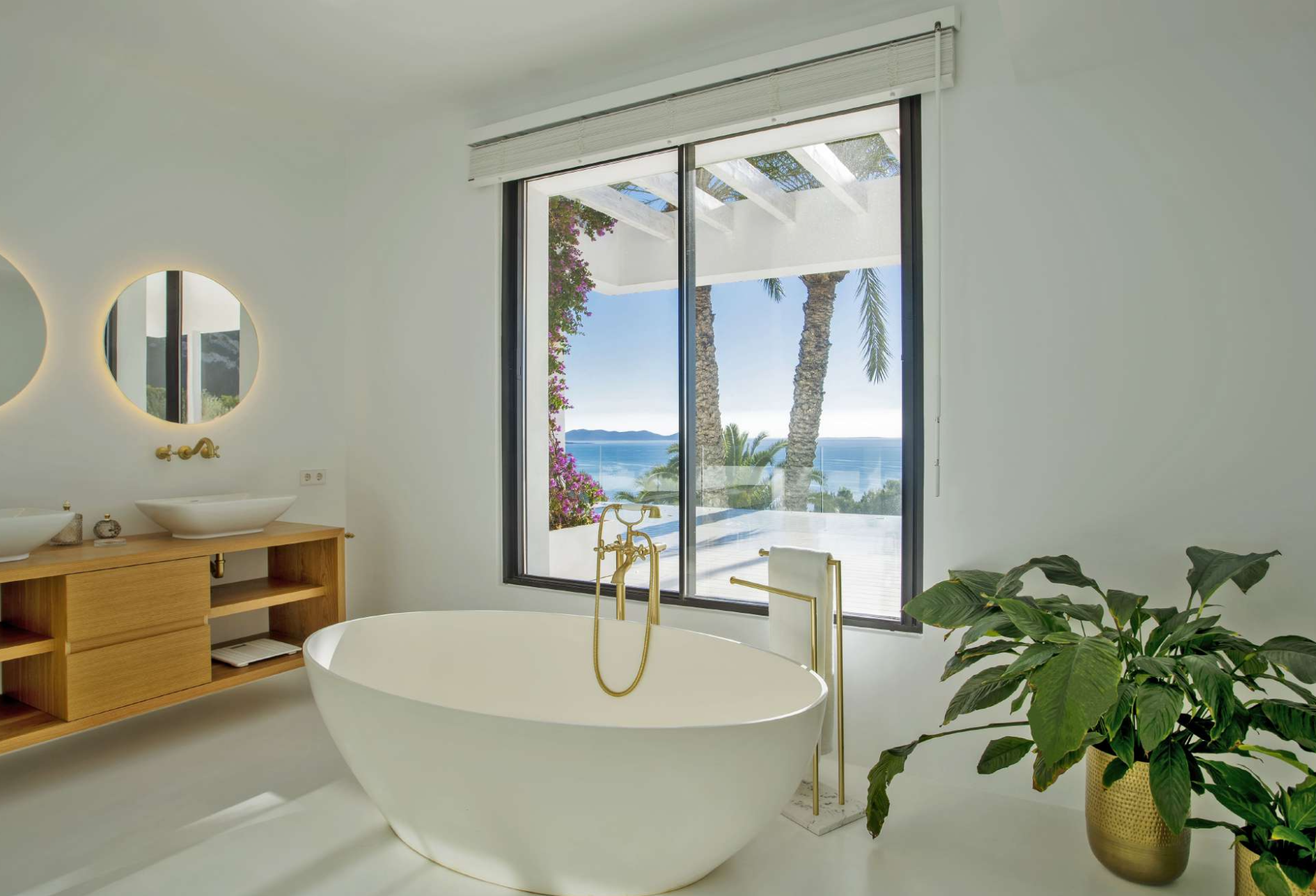 The villa has five en-suite bedrooms, including a gigantic master suite with a lush bathtub and incredible sea views. Four of these bedrooms are located on the upper floor of the main house. The final double bedroom is an elegant bungalow overlooking the pool. All bedrooms have access to the outside terraces and gardens.