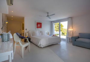 Comfortably nested in luxuriant gardens of trees, flowers and large greens, with breath-taking wild hills and sea views.