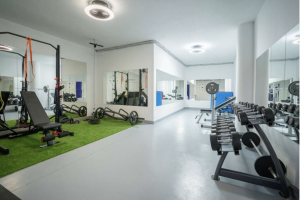 The outdoor space is equally impressive, offering private parking, a serene water feature leading to the 80 m² swimming pool, two grand fountains, and an expansive upper-level terrace with multiple lounge and dining areas. A covered gym completes the setting, making this property ideal for both relaxation and active living.