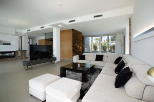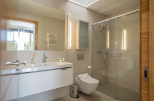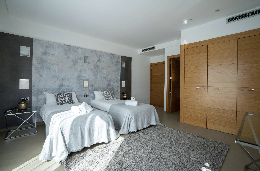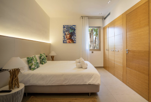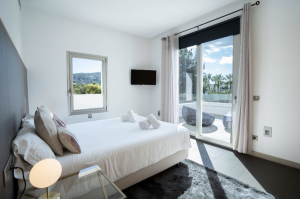 The villa allows 14 guests. The main building presents 5 comfortable rooms. However in the adjacent privately accessed apartment there is a modern living room, a fully equipped kitchen and two bedrooms with bathrooms. The villa is in immaculate condition with modern furnishings and minimalist, tasteful decor throughout with neutral tones creating an air of sophistication.
