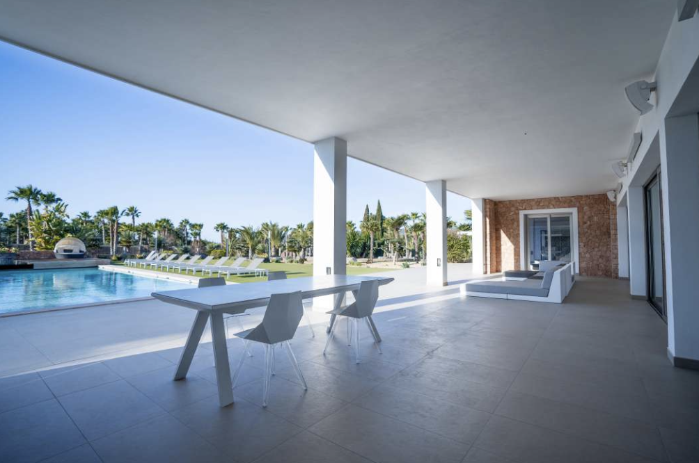 The villa is located in a residential and quiet area close to Jesus village, perfectly close situated to the center of Ibiza town, the capital of the island and the hub of the famous nightlife and gastronomic scene, and a short drive to the beautiful Talamanca beach.