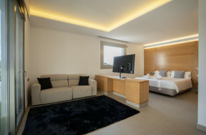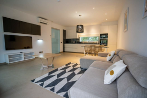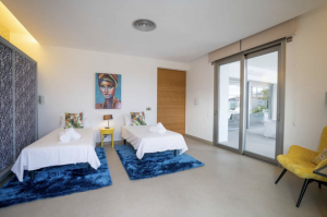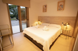 The villa allows 16 guests. There are 5 bedroom located upstairs in the main villa, one double with bathroom and jacuzzi bath/shower with private terrace. In the adjacent privately accessed apartment there are two more bedrooms with bathrooms and fully equipped kitchen.
