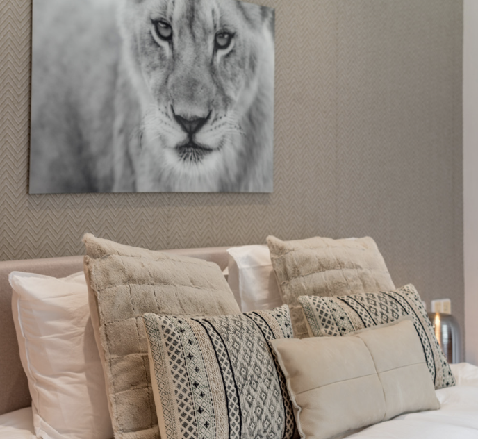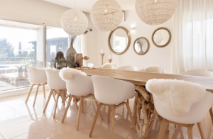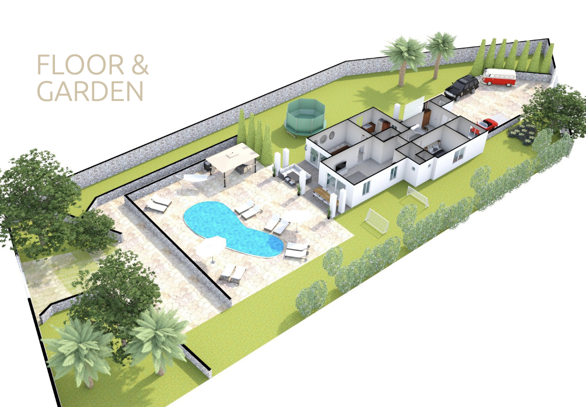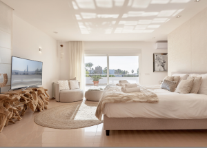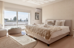 The interior space of 350 m2 offers 5 luxurious bedrooms and 5 fully equipped bathrooms, distributed over 2 floors and an apartment in the garden.