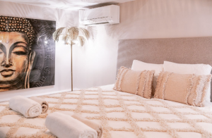 Spectacular luxury villa freshly renovated with large, heated swimming pool, tennis court, artificial beach area with beach house, lots of palm trees, a fireplace and arti fountain. The perfect place in Ibiza to collect a lot of great memories. Amazing views over the sea and Formentera from the rooftop rooms. Conveniently located on the road between Ibiza (4km) and the lovely town of San Jose, the villa is within easy reach of multiple renowned beaches as well as Ibiza’s famous nightlife, while offering extraordinary serenity and privacy on its lush private estate.