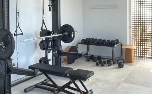Elevate your fitness routine in the villa's exclusive private gym, complete with all the equipment you need for a full-body workout.
