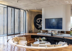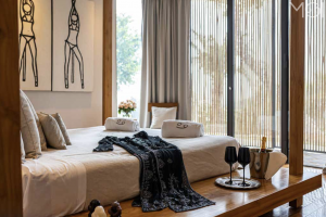 Bedroom 1: Master 150mq (bed 200x 200cm) with bathroom en suite with Jacuzzi and 30mq en suite dressing room and 75’ SONY 4K TV with professional audio system
