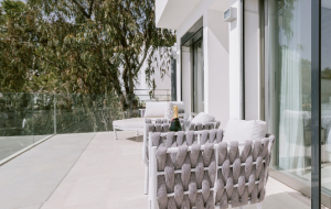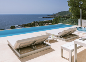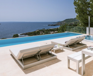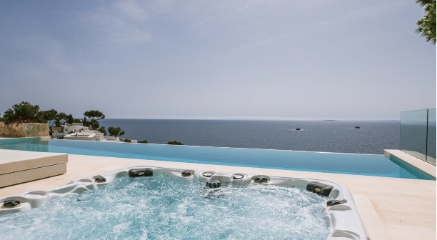 This gorgeous modern villa has 6 beautiful and serene bedrooms, 4 of which are dedicated to hosting guests, with an amazing master bedroom with its own walk-in closet. There are 2 ensuite service bedrooms designed to accommodate service personnel or which can be used as additional guest rooms for larger groups. The bedrooms offer stunning sea views, allowing you to wake up to magical vistas through the large floor-to-ceiling sliding doors that give access to the sunny terraces. The spacious and open living and dining area offers plenty of room to hang out on the comfortable sofas or to enjoy meals at the grand dining table. The sleek white kitchen is fully equipped and offers a wonderful kitchen bar to have breakfast together or host unforgettable wine tasting evenings, since the house has its own wine cellar. Next to the kitchen you will find a convenient laundry room with a washer and dryer. From the outdoor areas you will enjoy incredible million-dollar-views over the infinity pool and the sparkling Mediterranean Sea. Whether you are basking in the sun on one of the many sun loungers, savoring alfresco meals with your family or relaxing in the covered lounge area with friends, the exteriors provide plenty of options to take in this beautiful coastal panorama. Not only does this masterpiece offer an amazing infinity swimming pool, but completes your Mediterranean vacation with a relaxing jetstream jacuzzi with breathtaking sea views. Parking is available infront of the home on the tranquil and safe street. This majestic villa offers everything and more to guarantee an unforgettable vacation retreat for you and your family or friends.