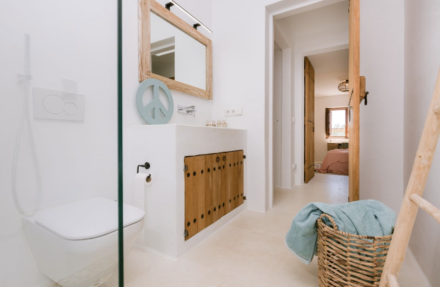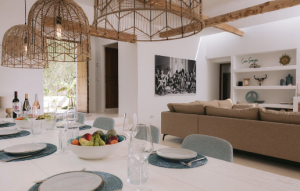 This characterful property has been modernised to combine high-tech comforts with a wealth of charming features. The idyllic garden brims with mature trees and fragrant planting to create a secluded escape where you can soak up delicious Ibizan sunshine all day long. Inside, the polished tiled floors, authentic juniper wood beams and slatted wood ceilings create a rustic ambience in surprisingly large rooms. The open-plan living space includes a cosy lounge area, formal dining and a smart, well-equipped kitchen.