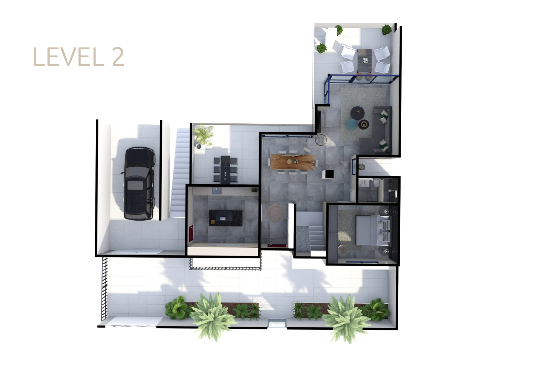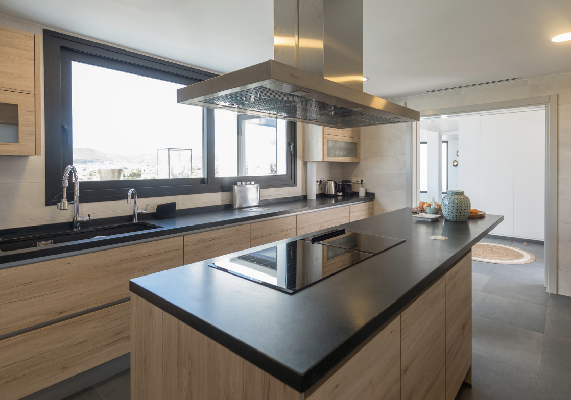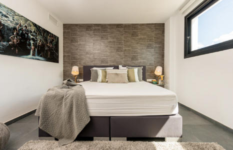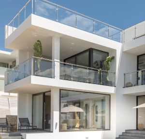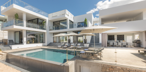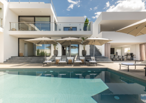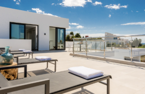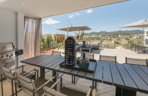 It is set over multiple levels with each level featuring its own balconies and large windows, providing natural lighting throughout the day. All aspects of the villa provide an open atmosphere connecting the sophisticated design with its natural environment. Talamanca 3 has a modern style displaying sleek, straight lines with smooth and shiny surfaces in Ibiza colors schemes.