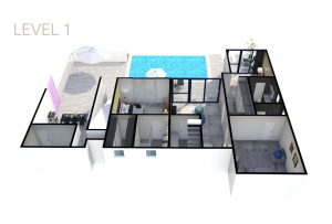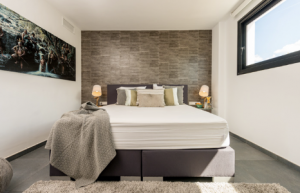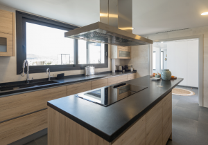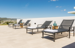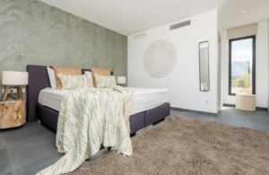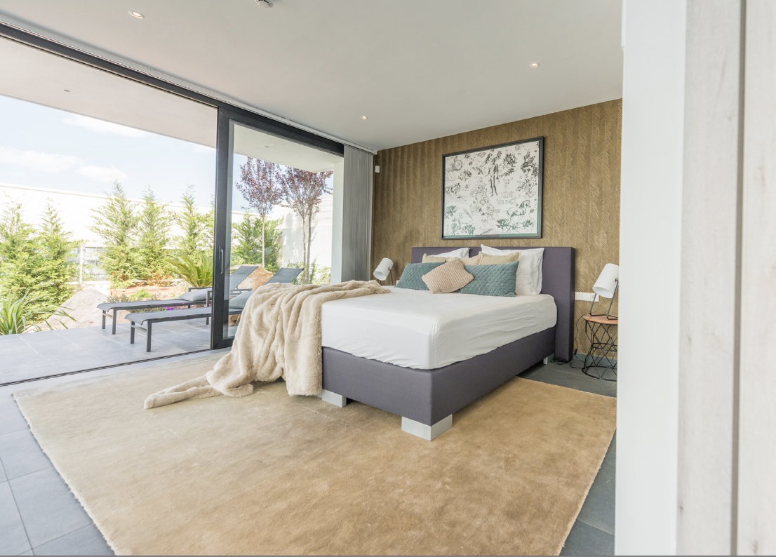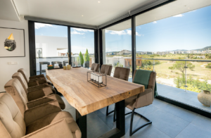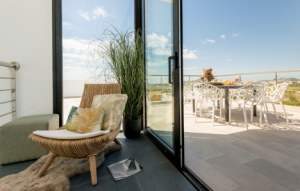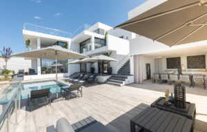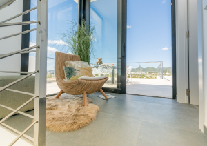 There are 5 luxurious double bedrooms, all have en suite bathrooms. On the ground floor there are two bedrooms, and a unique chill out space for kids. On the first floor you can find the third bedroom, the fully equipped kitchen, dining space and large living room. All boasting spectacular outside views. The balcony on the first floor features a lounging area, perfect to enjoy the evening sun. The sun deck is located on the third floor. In this area you can enjoy sunshine all day through. This is the perfect spot for a morning breakfast or an evening chill on the sun loungers!