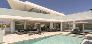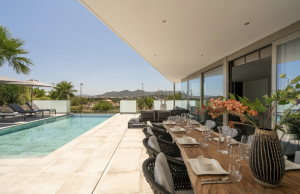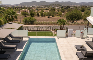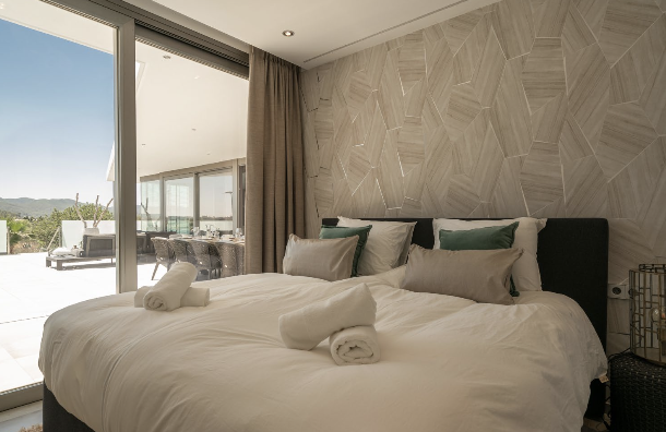 Brand new built holiday villa in Talamanca with views of Dalt Vila, the serene mountain landscape of Ibiza and the Mediterranean Sea. Only the best materials have been used in the finish, so that you are in a modern oasis of luxury. The superior styling and furnishing in which natural stone, wood and velvet are combined, creates an ultimate pleasant atmosphere. When you enter this location; you don’t want to leave.